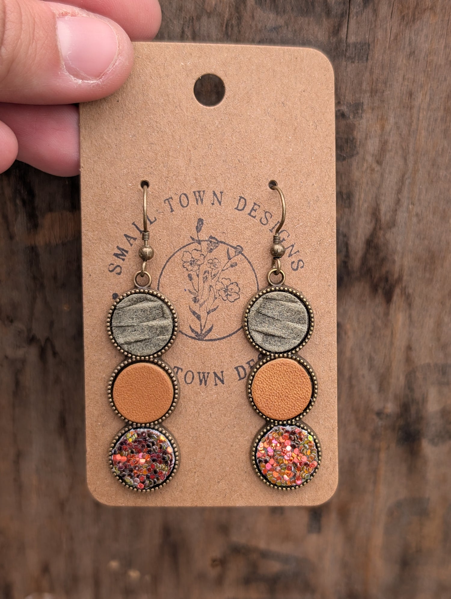 Handcrafted leather, wooden, and acrylic earrings for the fall season.